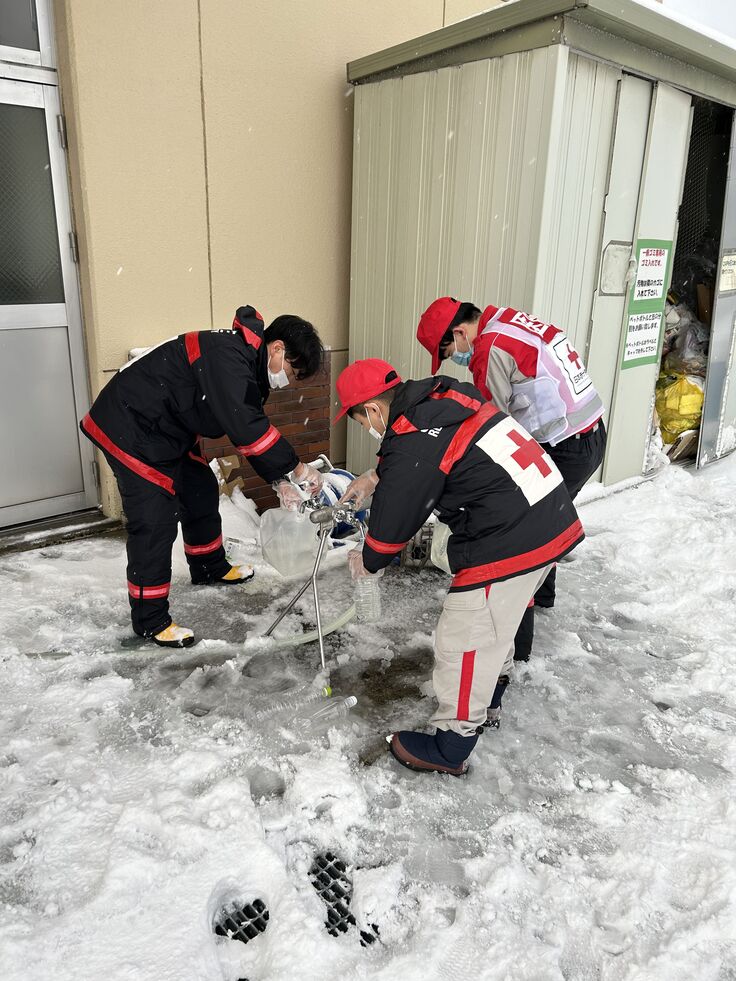 1月5日に珠洲市に設置を完了し、最大3,200人分の生活用水を生産できる浄水設備(株式会社キッツより提供)アクアレスキューの動作確認および定期メンテナンスを実施してまいりました。