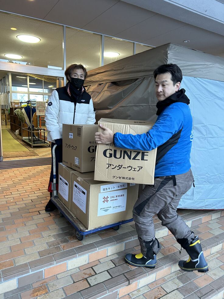 また、認定NPO法人ピースウィンズ・ジャパン(以下、PWJ)に提供された支援物資を避難所や支援者などの手元に届けるラストワンマイルの支援、及びPWJ並びにPWJが運営する「空飛ぶ捜索医療団”ARROWS”」(以下、ARROWS)の現地活動サポートのための物資運用支援も併せて行ないました。