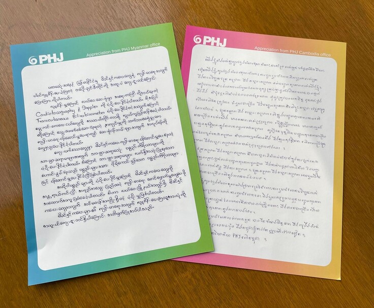 写真はミャンマーとカンボジアからの感謝の手紙です。