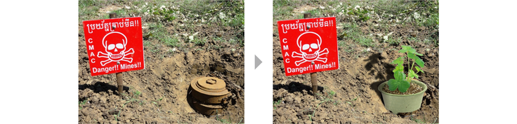 「みんなが植物を育てることで地雷の無い土地をつくりだす。」