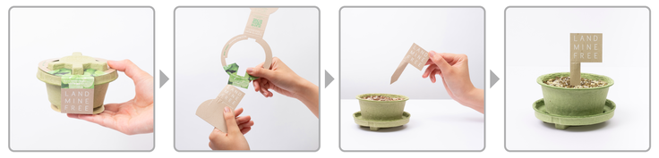 PLANTS MINEがプロダクトとして優れているポイントは、ただ単に環境配慮であるだけではなく土に埋める際に地雷の設置を擬似的に体験することにより、簡単に設置でき、一度埋められると誰かが踏むか、もしくは、取り除かない限り半永久的になくなることはない非人道的な地雷に対する問題を学ぶことができる点が挙げられます。