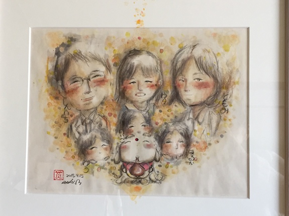 READY FOR? リターン【いつもそばに感じる温もり】作家 村井紘一が描く似顔絵1点(額縁付き)をご購入いただいたご家族の似顔絵です。