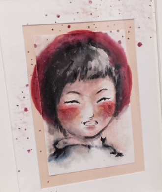 ■遺影→イメージを「赤」、口を開いた笑顔の似顔絵