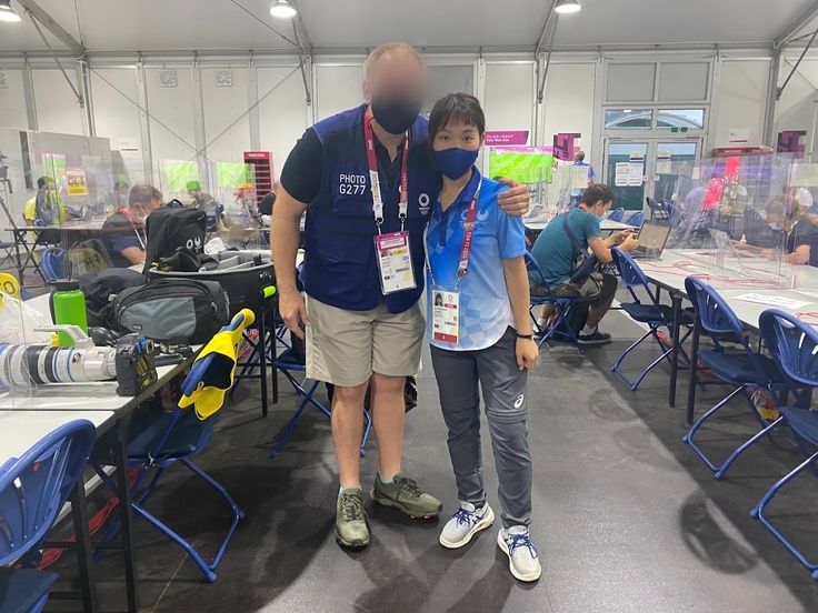 五輪ボランティアとしては初めて2021年に東京オリンピック・パラリンピックでメディアの裏方サポートとして参加しました。主にカメラマンの撮影位置誘導や表彰式の仕切りをしていました。