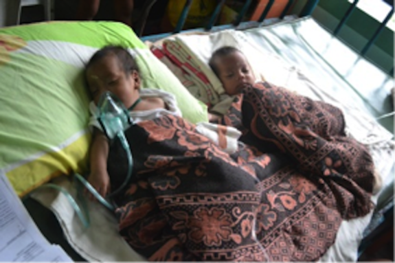 (フィリピンの病院で出会った双子の赤ちゃん。ベッドは二人で一台です。)