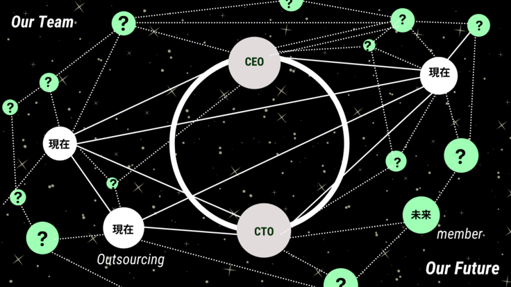 ●現在、コアメンバーは代表の私とチーフエンジニアでの二人で他の必要な人材はアウトソーシングで補っている状況です。