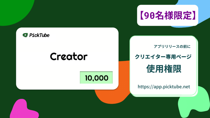 ●10,000円(90名様限定)/'PickTube'クリエイター専用ページ使用権/90名様限定