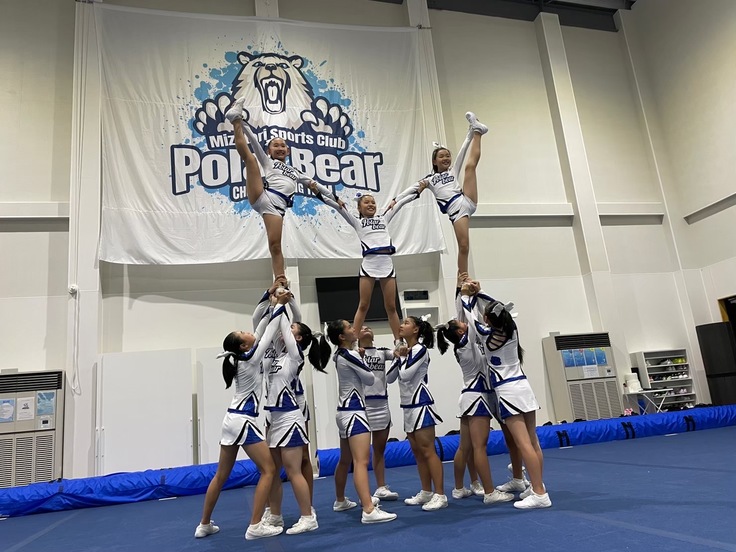 Mizutori Sports Club PolarBearは、幼稚園生から30代の社会人まで約100人の生徒がいます。初心者クラスから、今回のチームのように大会へと参加して競技としてチアリーディングに取り組むクラスと分かれており、各年代がチアリーディングを通して切磋琢磨し、目標とし合い、日々成長を続けています。