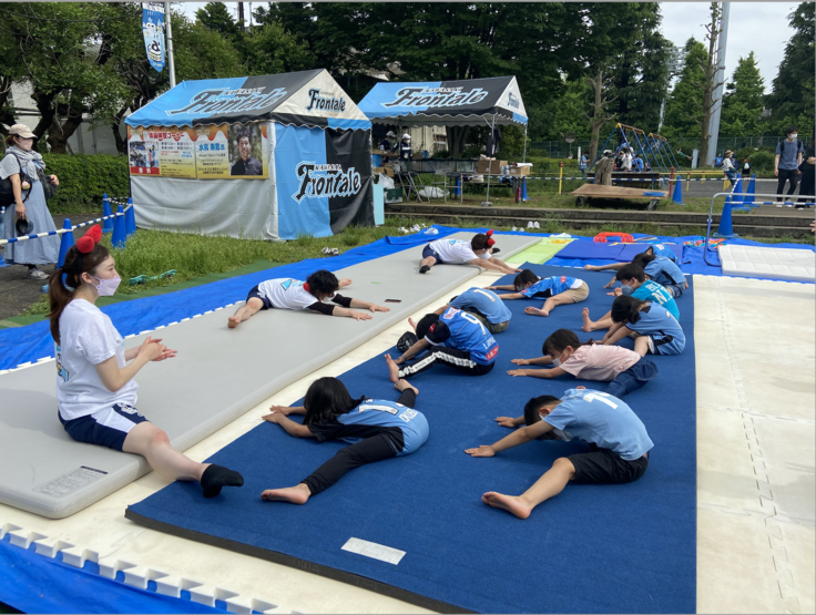 器械体操、チアリーディング、新体操を中心にスポーツの習い事を提供する傍ら川崎を中心に活動する、プロサッカーチーム「川崎フロンターレ」や、プロバスケットボールチーム「川崎ブレイブサンダース」など、さまざまな団体と協力し、体操、チアリーディング、新体操などのスポーツ体験やデモンストレーションなどを通じて、多方面から、地域をスポーツで盛り上げています。