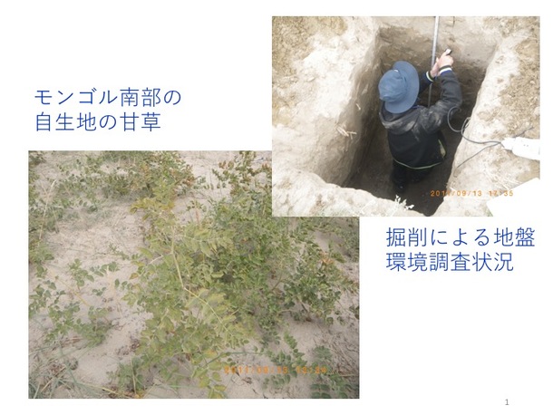 甘草の自生地を掘削して,地盤の中を調査しました。