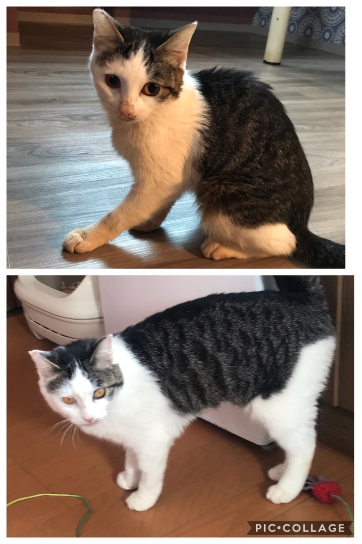 今にも死にそうで衰弱し、草むらにうずくまっていたパンプキン