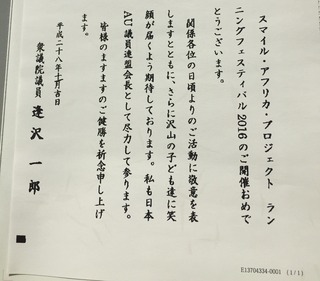 Q&AAA(トリプルエー)+プロジェクトのメインサポーター逢沢一郎先生からは祝電が。