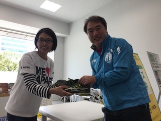 Q&AAA(トリプルエー)+プロジェクトのメインサポーター厚生労働省 結核感染症課の浅沼一成課長は、シューズ寄贈にいらしてくださいました!