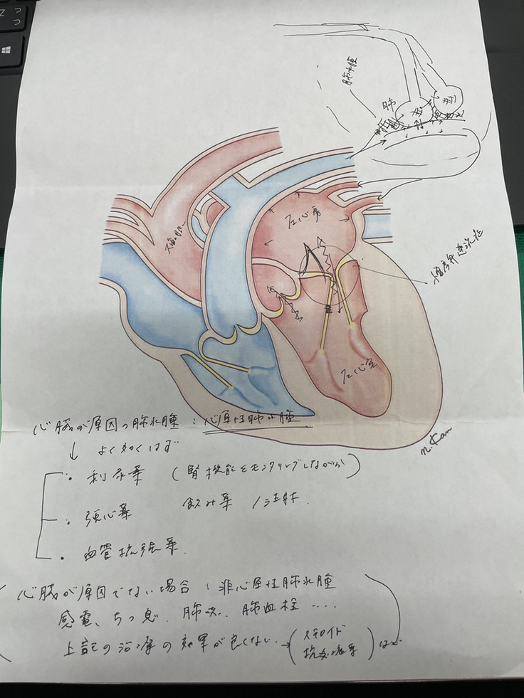心臓の弁を支える腱索が切れたことによる、僧帽弁閉鎖不全症からの、肺水腫をおこしているということでした。