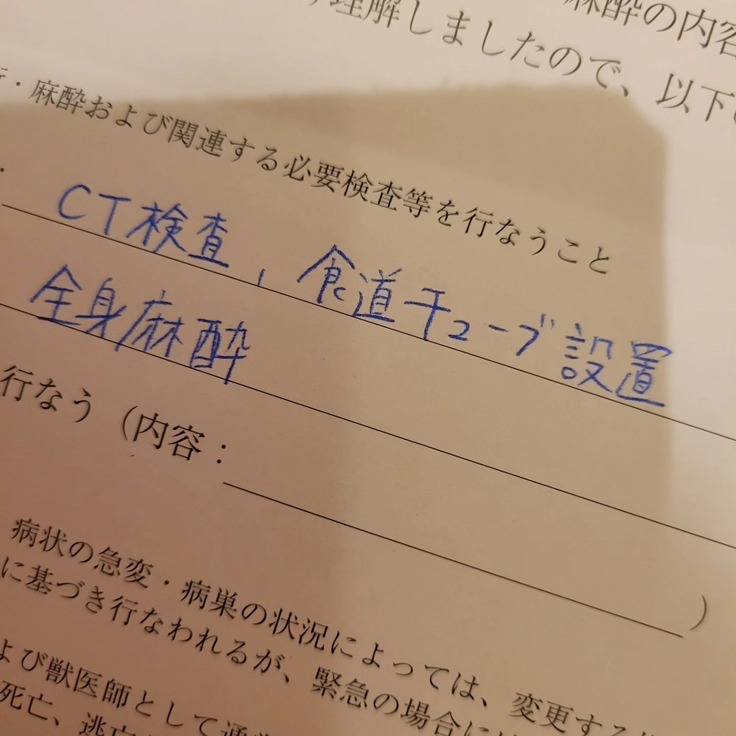 CT撮影の際に鼻に入ってるカテーテルを取っていただき食道チーブに変更していただく予定です。
