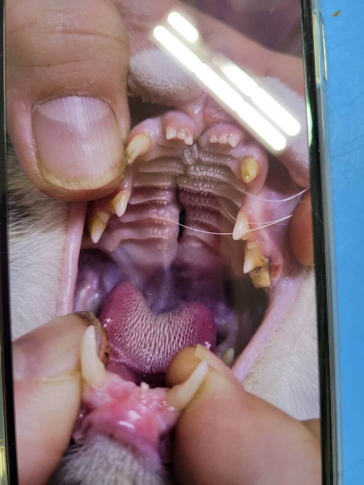 タルタルの口蓋裂は、先天性の可能性が高く歯茎の部分から亀裂が入っています。