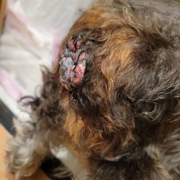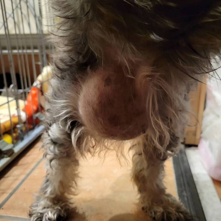 後ろ足の付け根に拳2つ分くらいの腫瘍