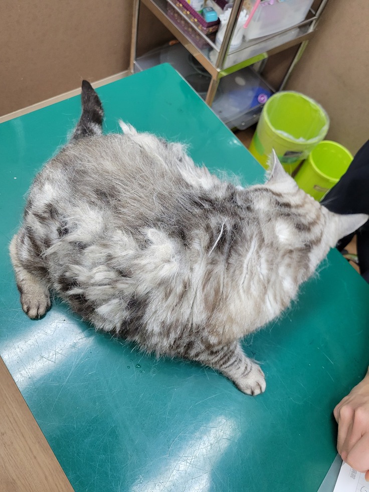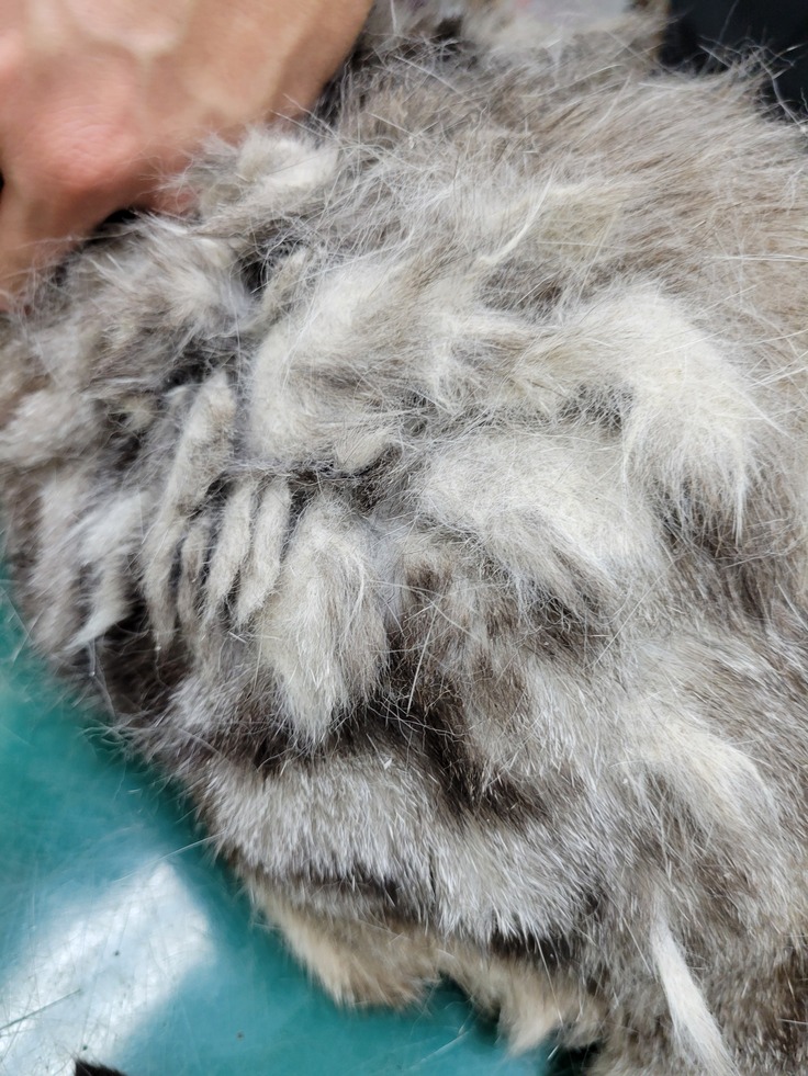 毛玉が凄い状態ですがもう少し環境に慣れてからバリカンをしてあげたいと思っています。