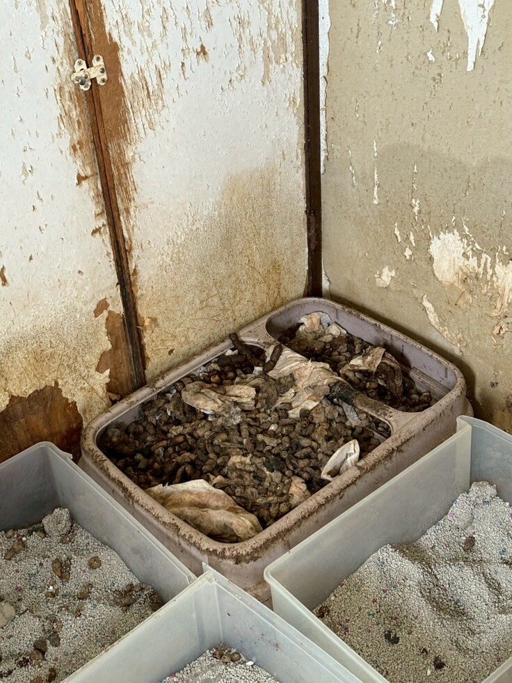 1階土間部分の古いトイレに大量の糞と虫…