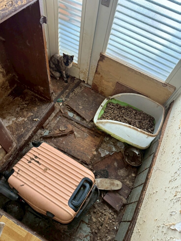 スタッフたちと「ごめんね。怖くないよー」と声をかけながら猫たちに怪我がないように荷物をゴミ袋に入れていきました。