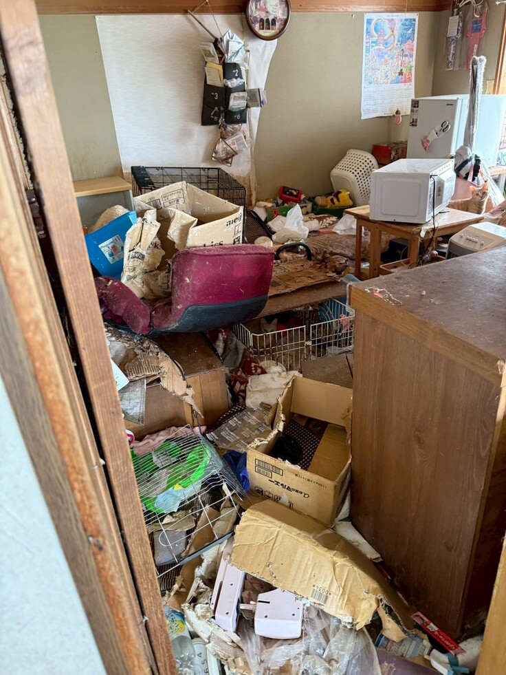 玄関は、足の踏み場がなくおトイレも便がたまっており床にも固まった糞が