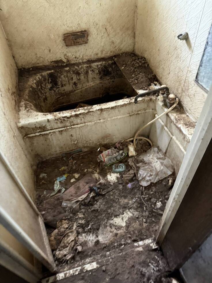 お風呂場は、浴槽の三分の一ほどまで糞尿がたまりヘドロのようになっていました。