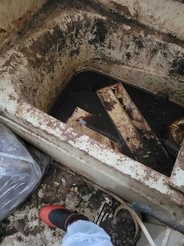 中に猫が落ちて亡くなってる可能性もあったのでザルですくいながら作業を進めました。