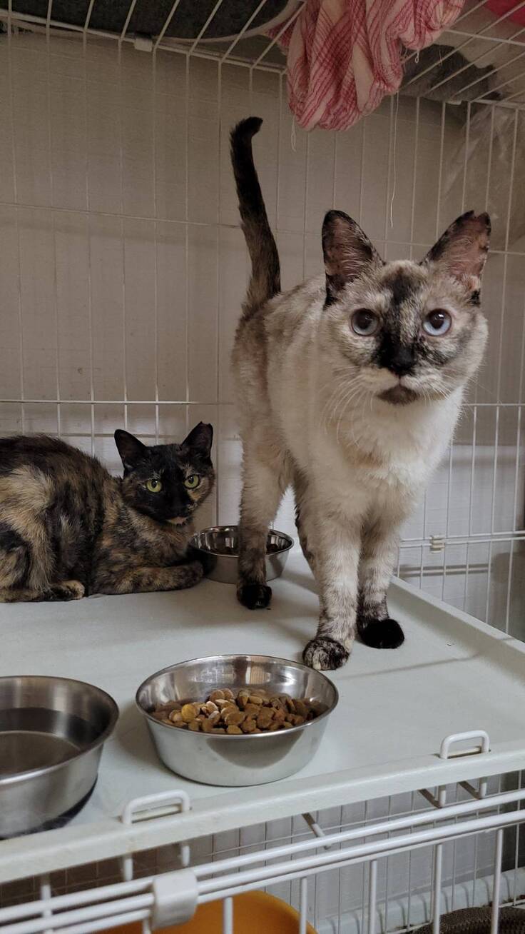 清掃の間ずっと私の後ろをついてきたガリガリのシャムの子と肩で息をしていたガリガリのさびの子を迎えにいきました。