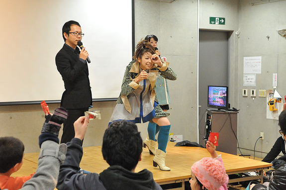 メンバーと、商店街の店主さんが紅白に分かれて歌を歌い、観に来て下さった皆さんが採点するという、まさに「紅白歌合戦」。