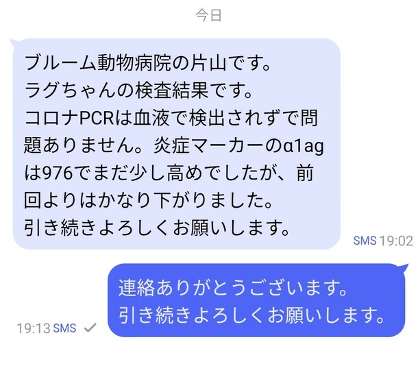 獣医の先生から血液検査の結果報告がありました。FIP治療が順調に進んでいます。この状態を維持つづけるために、必ずや達成します。皆さん応援お願いします。