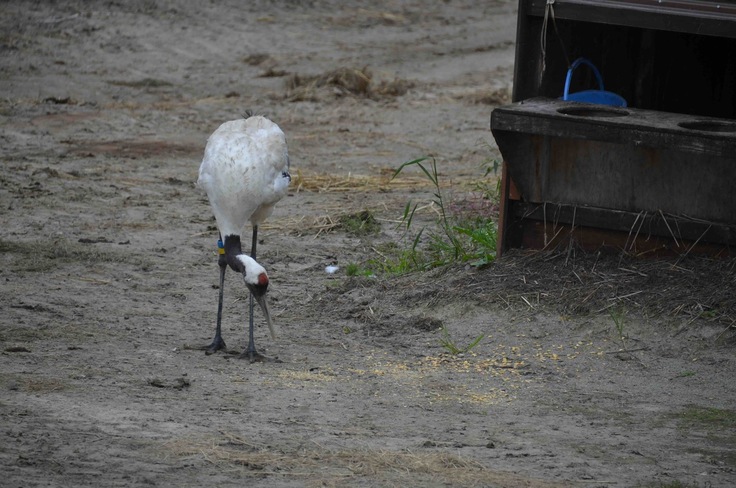 事故に遭って飛べないところを保護され、野外生活に耐えられるまでに回復したタンチョウを、環境省に協力して、