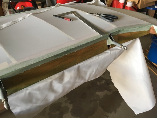 規定の幅を確保して、ファブリックを主翼に接着します。