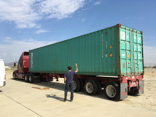 コンテナが届きました。長さ40ft(12m)、大きいです。