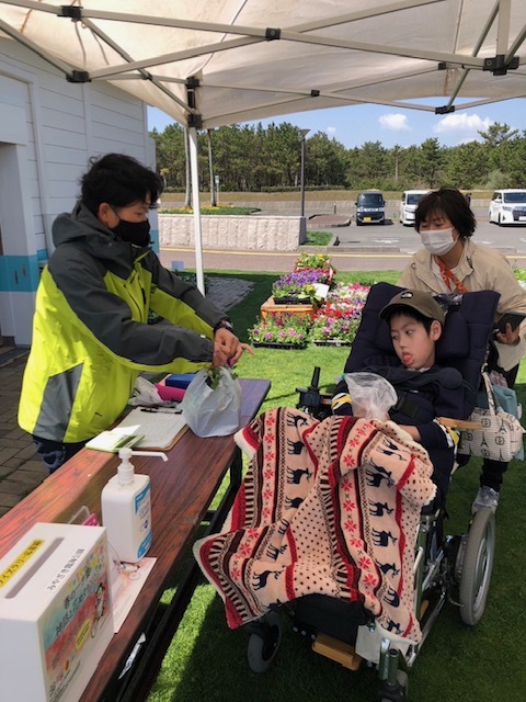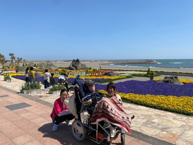 宮崎臨海公園で開催中の「サンドフラワーフェスタ」にSくんと保育士と看護師で行ってきました。