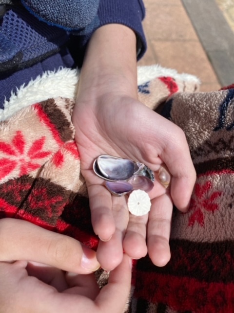 でも貝殻をたくさん拾って楽しんだようです。お留守番だったスタッフに、拾ってきた貝殻を嬉しそうに見せてくれました。