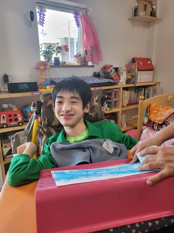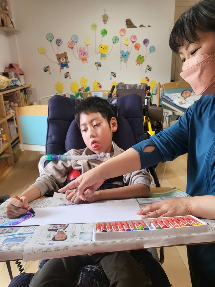 Sくんはクレパスで根気強く、色を選びながら丁寧に塗っています。