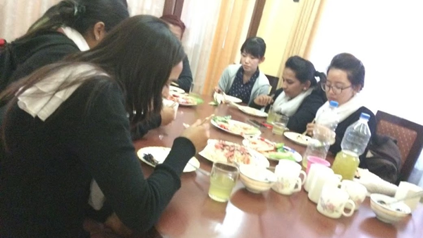 私たちのメンバーの中にも、ネパール人の歯科医師スジャータさんがいます。そして、この研修で宿泊した施設は、日本人のご主人とネパール人の奥様が経営している「ペンションスザータ」でした。奥様は、とてもお料理が上手なので、私たちが食事に困らないようにと毎朝トーストや卵料理などの朝食を用意してくれました。また、体調を崩したメンバーには白かゆを用意してくださったこともあります。