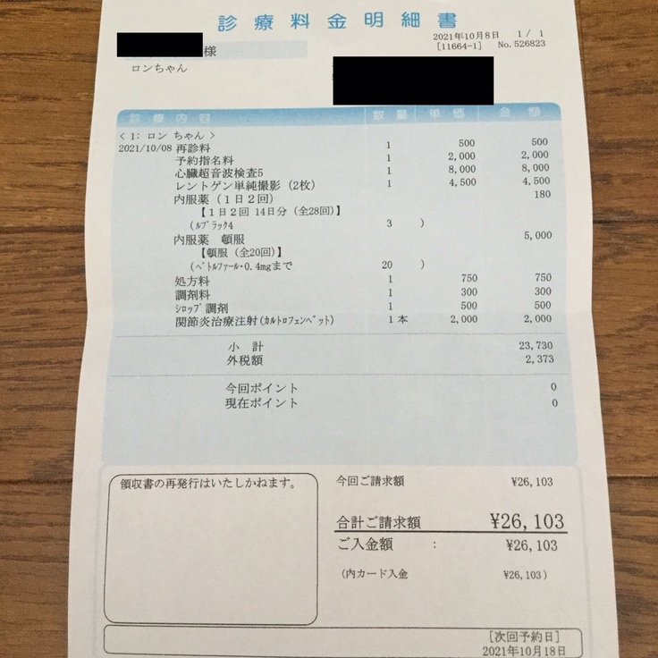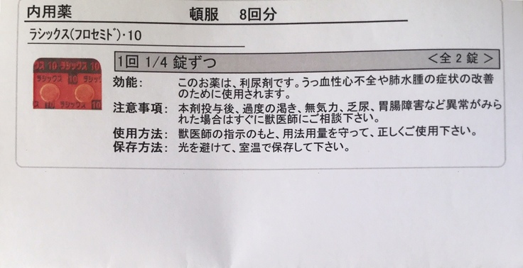 咳が止まらない日が続いており、心臓に過度の負担がかかるため、緩和するための咳止めシロップと利尿剤が増量されました。