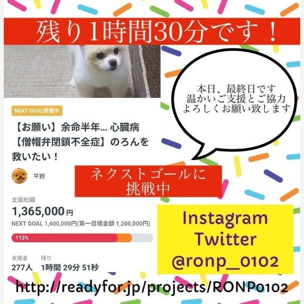 手術しなければ余命わずか 僧帽弁閉鎖不全症のロンを助けて下さい