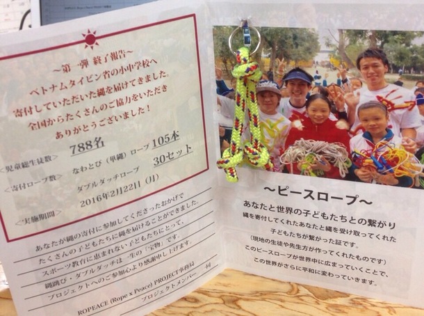 ROPEACE PROJECTからも、なわとびの贈呈証書を渡したので