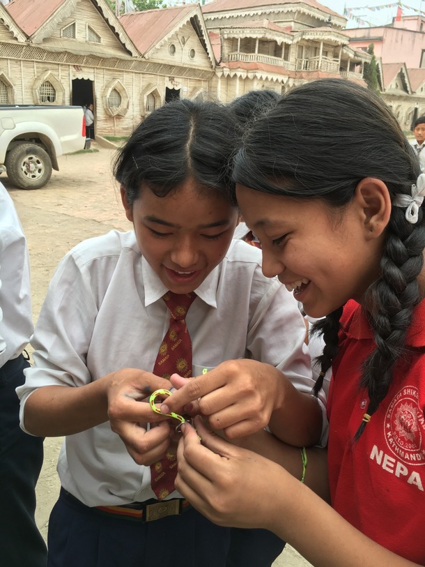 ①現地の子ども達が作ったロープを型どったキーホルダー(ピースロープ)をサンクスレターに付けてプレゼント!