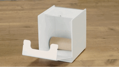今までのロールペーパーホルダーはロールペーパーを隠すことや収納することが目的で、 このように両手でカットする(引きちぎる)ものがほとんどでした。