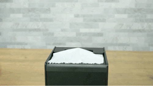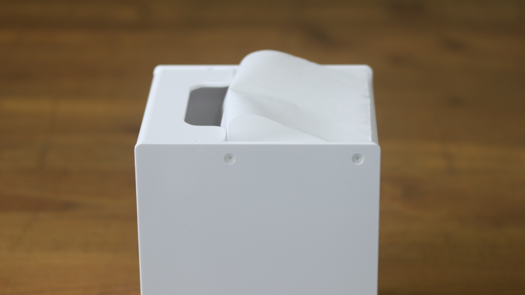 ROSSUEではカット後のペーパーを浮かすためのゴムを設置し「ティッシュのつかみ心地」に近づけました。