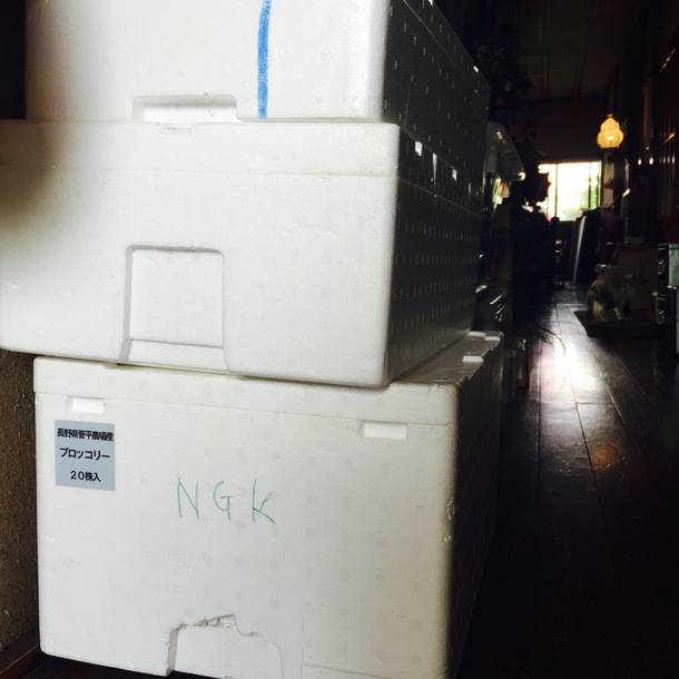 食材の搬出入用に大量の発泡スチロールを集めています。