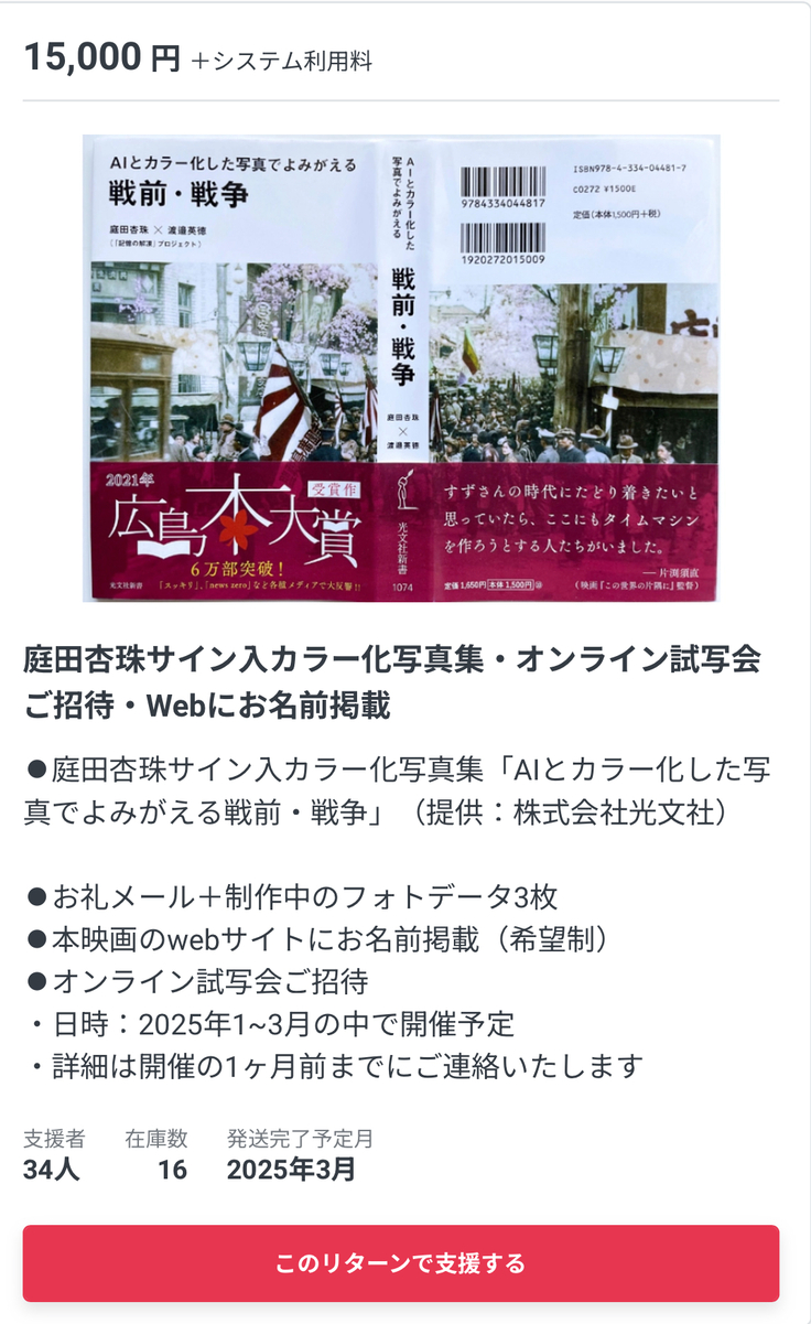 AIを使ったカラー化写真のパネル展示を数年前に実際見たときは衝撃を受けましたが今回もまた素晴らしいプロジェクトの映画の完成に向けても頑張ってください!応援しています!