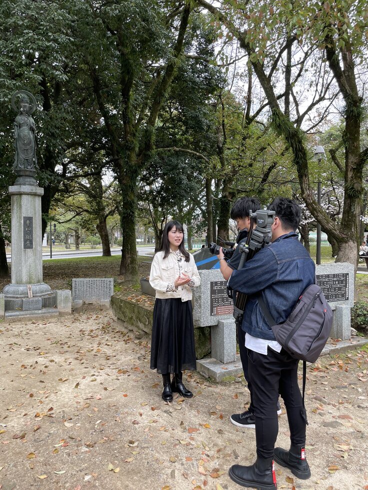 平和公園の「平和の観音像」前での撮影中のことでした。