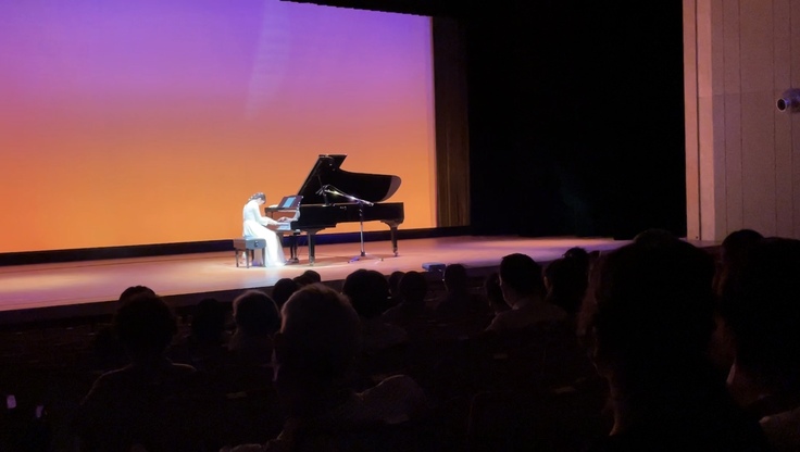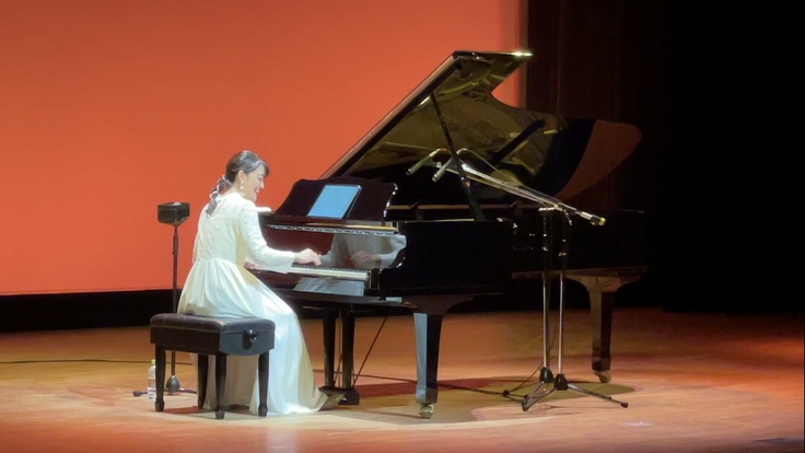主題歌「平和色の写真」をはじめ、日本テレビ「情報ライブ ミヤネ屋」オープニング曲の「スタートアップ」など心こもる音色、まるでピアノと一体化して踊るような演奏、どれもすてきでした!
