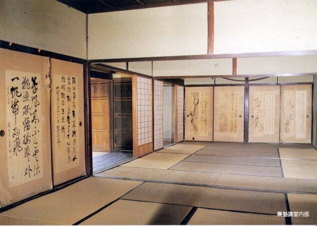 当初は金粟園(きんぞくえん)、現在の場所に移ってからは黄葉夕陽村舎(こうようせきようそんしゃ)または閭塾(りょじゅく)と呼ばれました。後に福山藩の郷校になると塾舎は廉塾、正式には神辺学問所と呼ばれ、多くの塾生を輩出しました。