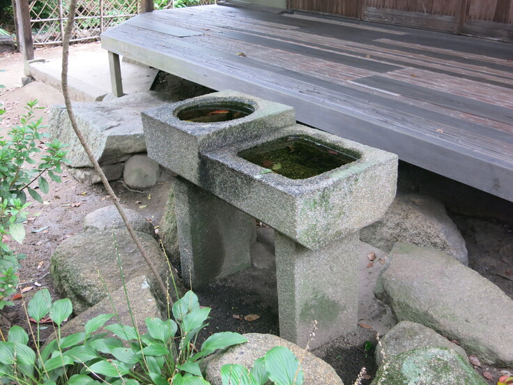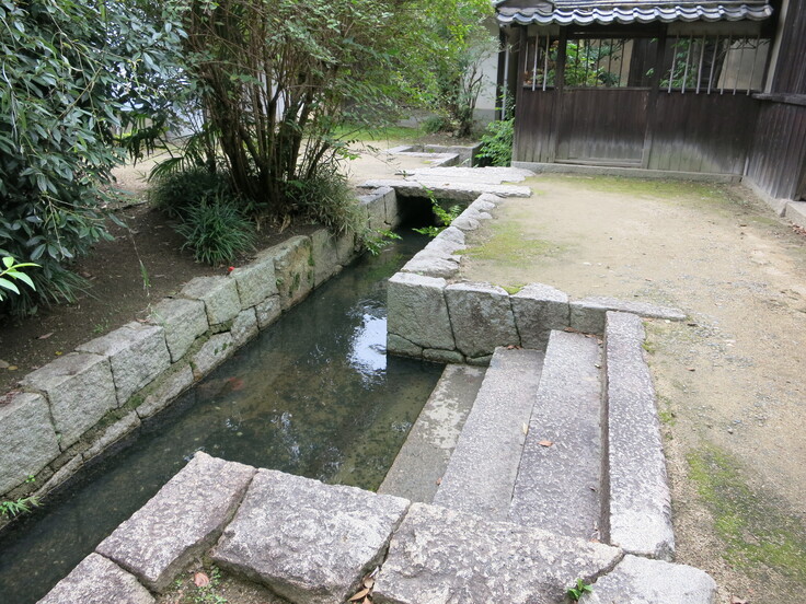 廉塾・付属施設と茶山旧宅の間を流れる石組水路には、石段が設けられており、塾生たちが筆や硯を洗っていたと伝えられています。