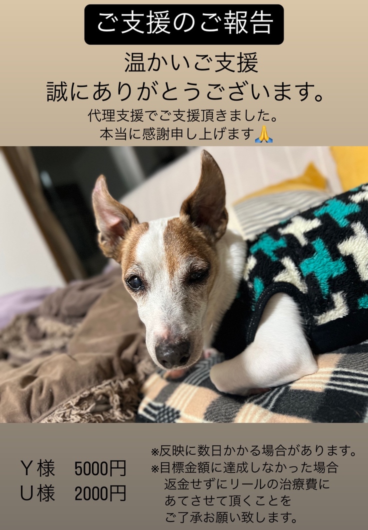 ※目標金額に達成しなかった場合、返金せずにリールの治療費にあてさせて頂くことをご了承お願い致します。